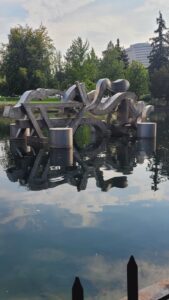 There are things that define Spokane. One of them is the Spokane River and Riverfront Park. The park is a meandering mix of green space and asphalt that stretches East to West on the north side of downtown and is bisected by the Spokane River. Today I needed to get from our home on the West side of Spokane to the eastern border of downtown, so I walked through Riverfront Park. I took my time and observed the surroundings. Over my 20+ years in Spokane there have been a lot of changes in the park. It is not my favorite park, but it has improved over the years. I took several pictures of sculptures in the park that have added visual and artistic interest. You can see some of them below.