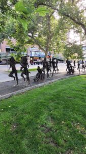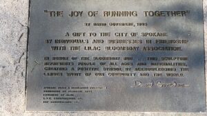 The oldest, and most celebrated of the sculptures anywhere in Spokane is the runners. “The Joy of Running Together” is a celebration of Spokane’s annual Bloomsday road race, one of the largest in the United States. It is a timed 12k run that has attracted up to 61, 000 participants at its peak. The first Bloomsday race took place in 1977 with 1500 participants, and now runners come from around the world to participate. It is likely the most iconic event or structure in Spokane.