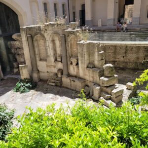 I have never been a big fan of museums other than art museums, or ones with dinosaurs when I was a kid. With all of the time on our hands, however, I followed Sheila’s suggestion we visit the Musee Arlaten. It contains collections of the arts, ethnology/culture and history of the Provencal region. The museum was founded in 1896, on the site of Roman ruins, as a response to the Provencal region ethnographically being left behind in many ways. It includes a large amount of multimedia devices that communicate the ethnographic history of the region.