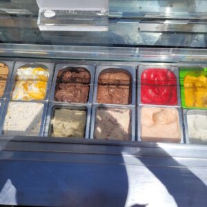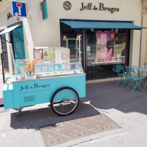 As we wandered after we left the museum, we saw a street food cart selling glace, which I believe is gelato? I decided to ask if they had any sugar and dairy free items. Voila! The mango was both and that meant Sheila could have it without any unhealthy symptoms. My reward for asking was a silky triple chocolate dish of glace. The glace are the creation of a Belgian Chocolatier named Jeff. Good news, he has a shop near our apartment.