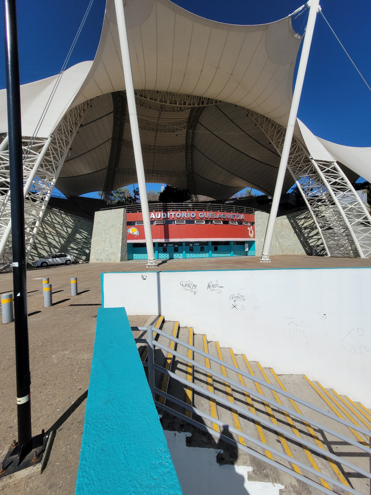 Today we found out the tent has a name, Auditorio Guelaguetza, is built in the fashion of ancient Roman and Greek theatres, and has a spectator capacity of over 12, 000. It is much more than a tent as it fashioned from great masonry blocks. It is only partially enclosed and is a very unique structure. We believe it’s true that the trek to the top is over 200 steps, and once you get there many more steps await if you choose to circumvent the auditorium. We were unable to go inside and had to settle for looking through metal bars to see the seats and stage. The auditorium is pictured in the featured image.