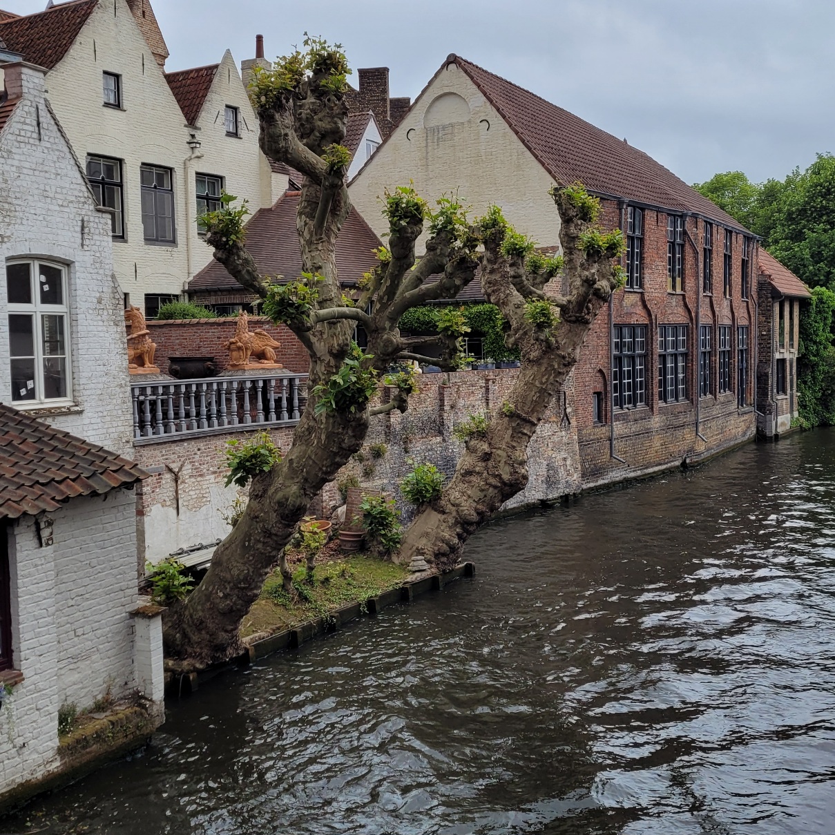 We walked to a train station yesterday morning in order to follow up on Alex’ advice to go to Bruges. I struggled to get our bus tickets loaded on to my phone before the bus left, even though I gave myself 30 minutes. More evidence of my tech deficiency. The ride was green and pretty, like all of Europe we have seen. This is a little oxymoronic. The people here claim to be in need of rain after several weeks of totally dry weather. I guess they need a dose of my home Spokane to see what dry is.